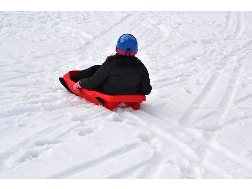V přední části je sněhová zábrana, aby děti měly oporu pro nohy.