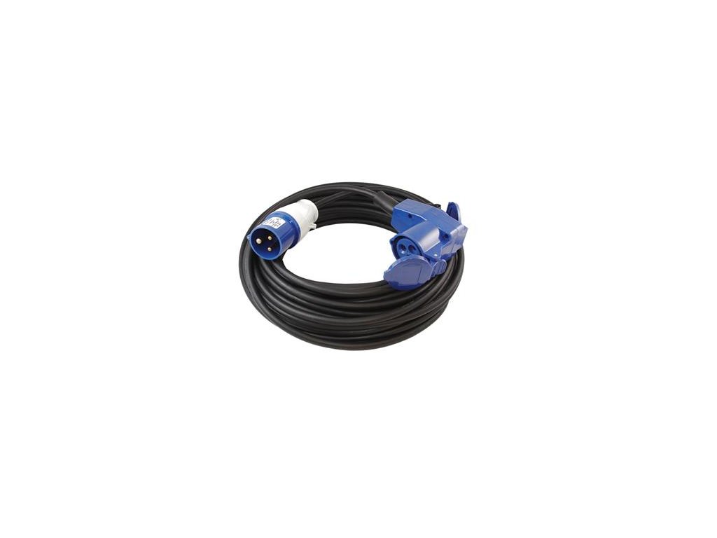 Elektrický prodlužovací kabel Gimeg CEE s úhlovou zástrčkou a zásuvkou je speciálně navržen pro karavany a obytné vozy. Prodlužovací kabel má extra zásuvku, takže můžete snadno dodávat energii do karavanu.