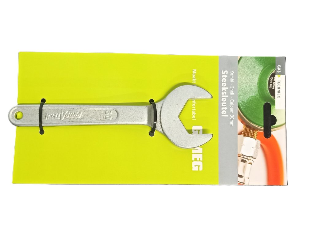 Stranový klíč na šestihranné matice o 30mm šířce. Je určen pro utahování a povolování matic na plynových regulátorech.