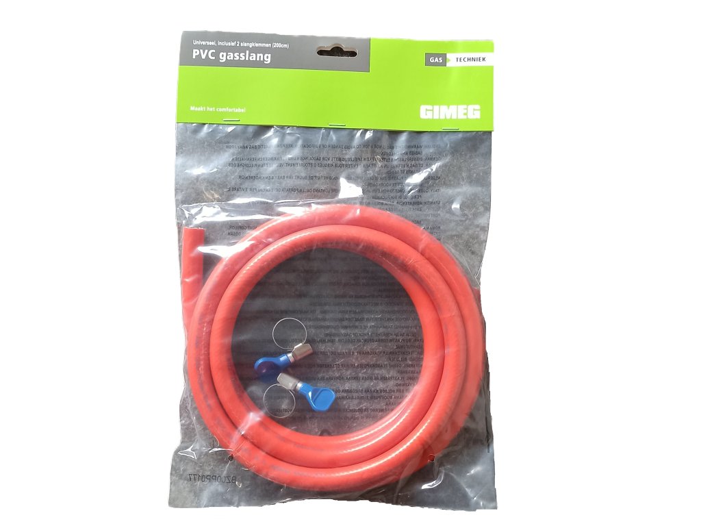 Tato sada od Gimegu se skládá z plynové hadice a dvou hadicových svorek, pomocí kterých ji můžete namontovat. Délka hadice je 2 metry a je vyrobena z PVC. Tento výrobek odolá pracovnímu tlaku až 10 barů a provozní teplotě -30°C až 80°C. Dvě hadicové spony mají šnekový šroub 11-16 mm. Spony mají křidélka, tak že není potřeba žádného nářadí. Tím se hadice připojí k vašemu zařízení. Plynová hadice má vnitřní průměr 8 mm. Chráněním hadice proti UV záření prodlouží její životnost, stejně jako její instalace do tzv. měkkého ohybu. Plynovou hadici je možné používat i ve venkovním prostředí.