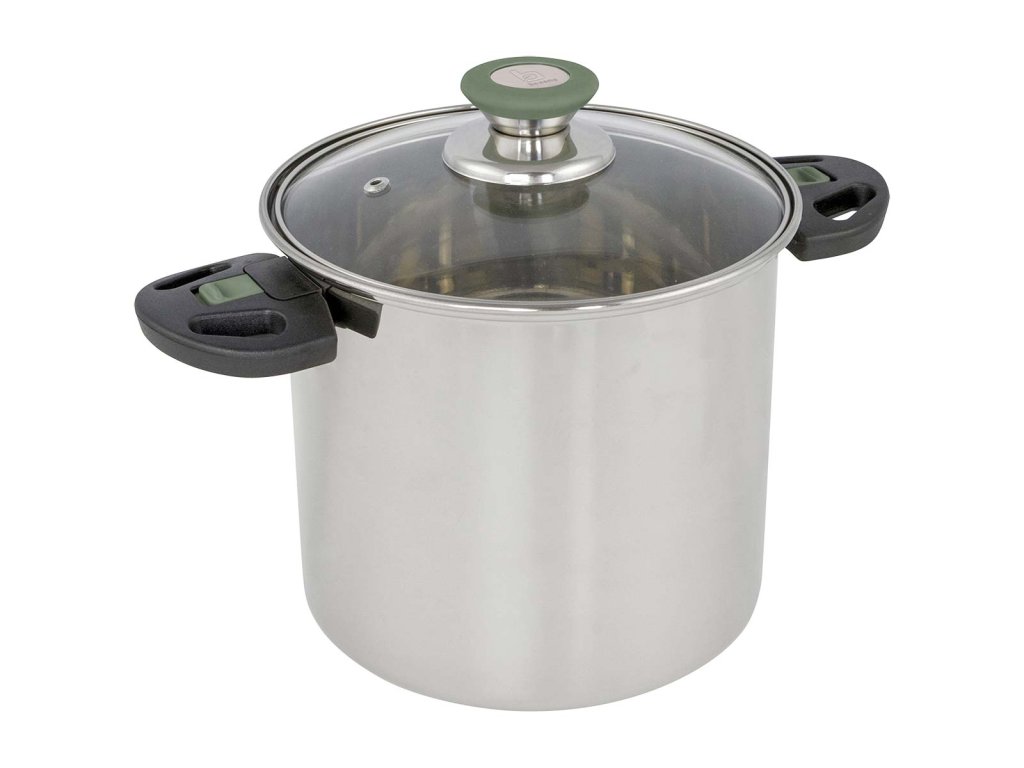 - Nerezové hrnce s tepelně odolnými a sklopnými držadly.