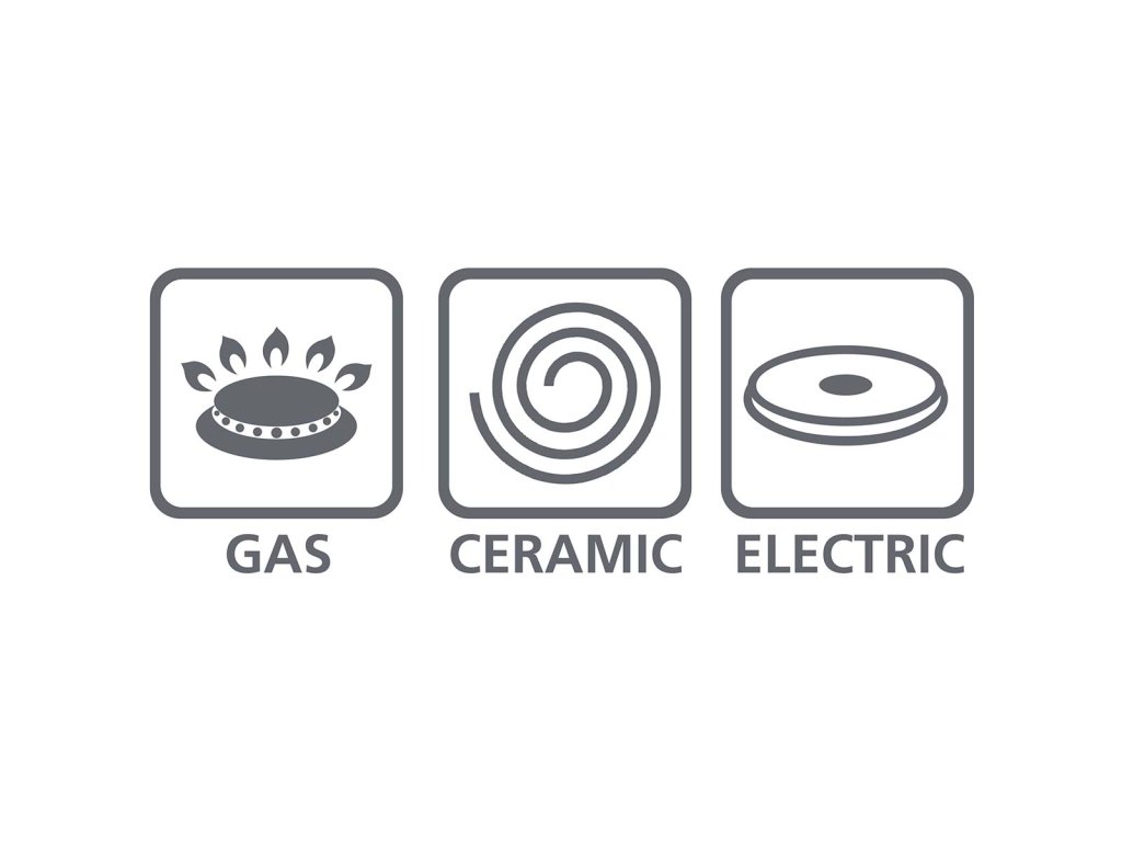 - Vhodné pro zdroje tepla, plyn, keramiku a elektriku.