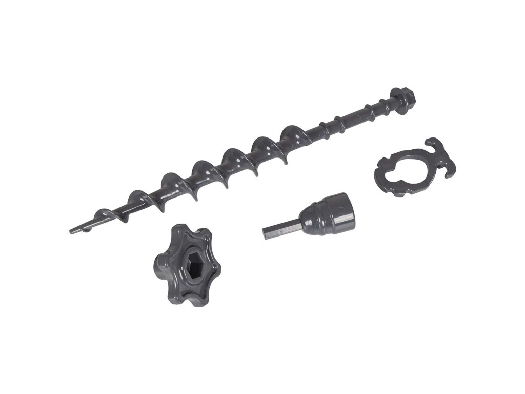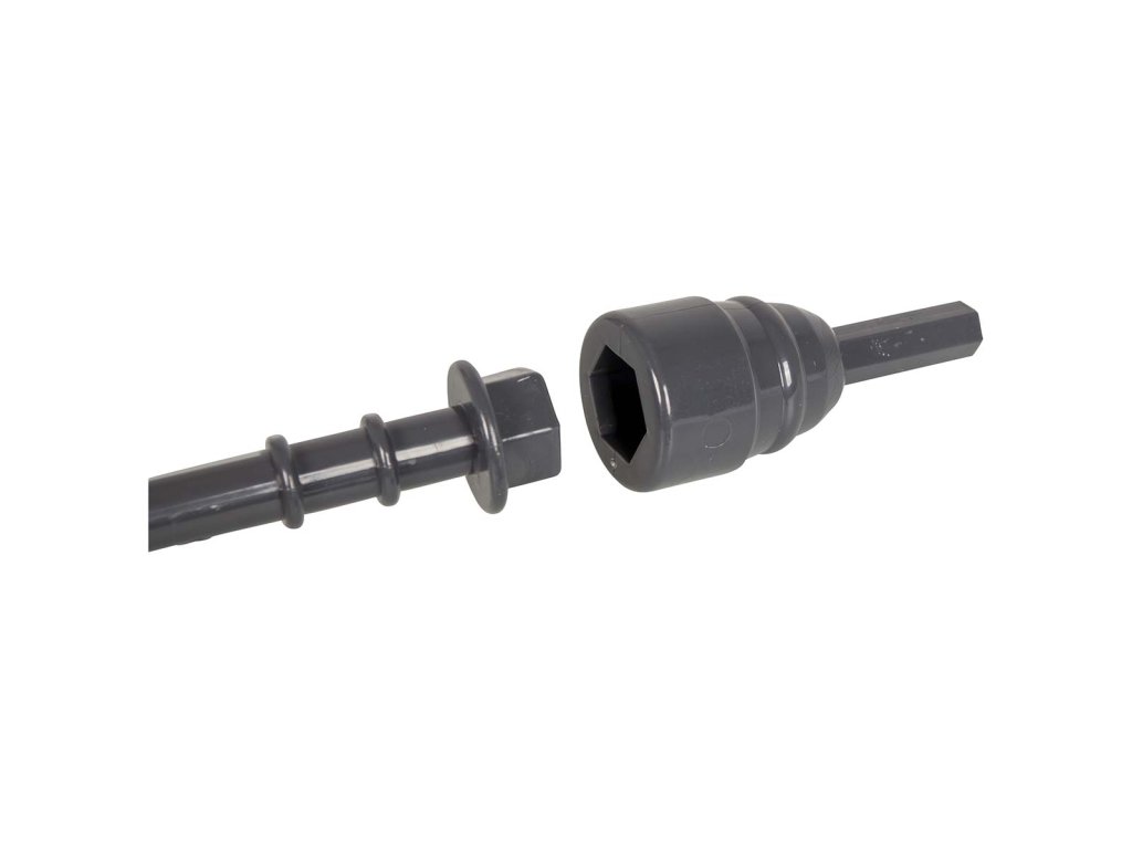 - Kolíky lze zašroubovat a vyšroubovat ze země ručně, ale také pomocí vrtačky.