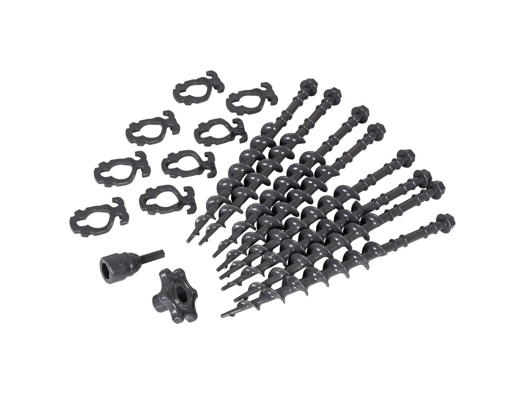 8dílná sada šroubovacích kolíků z pevného plastu vyztuženého skelnými vlákny.