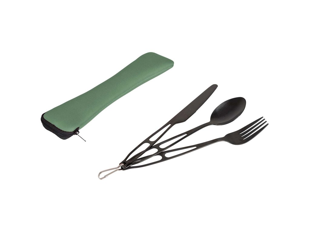 Sada 3 venkovních příborů v praktickém pouzdře. Sada příborů je vyrobena z nerezové oceli, a proto je ideální pro venkovní použití.
