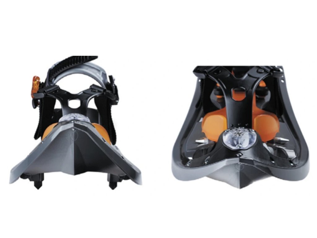 Sněžnice Inook mají výborně řešený systém uchycení špičky boty, který velmi dobře upevní jakoukoliv botu (trekkingová, snowboardová, …). Přesné a pohodlné utahování boty pomocí dvou pásků po 45°, to je zásadní detail, který zajišťuje dokonalé držení boty, aniž by na ni vytvářel tlak. To velmi oceníte při delší túře. Díky technologii utahování je respektována morfologie nohy a tím je zachována i přirozenost chůze.