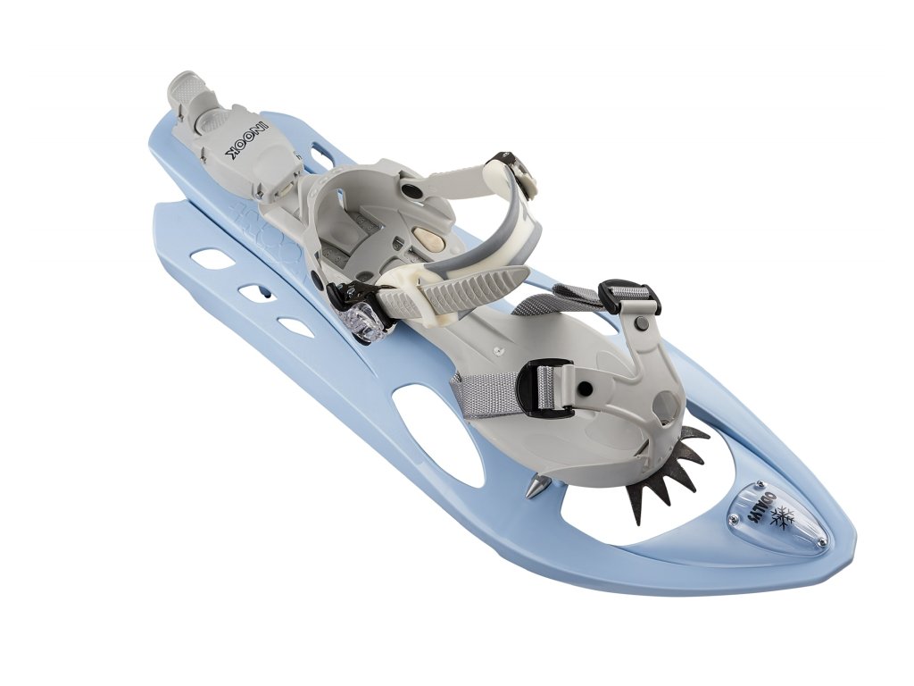 Sněžnice Inook mají výborně řešený systém uchycení špičky boty, který velmi dobře upevní jakoukoliv botu (trekkingová, snowboardová, …). Přesné a pohodlné utahování boty pomocí dvou pásků po 45°, to je zásadní detail, který zajišťuje dokonalé držení boty, aniž by na ni vytvářel tlak. To velmi oceníte při delší túře. Díky technologii utahování je respektována morfologie nohy a tím je zachována i přirozenost chůze.