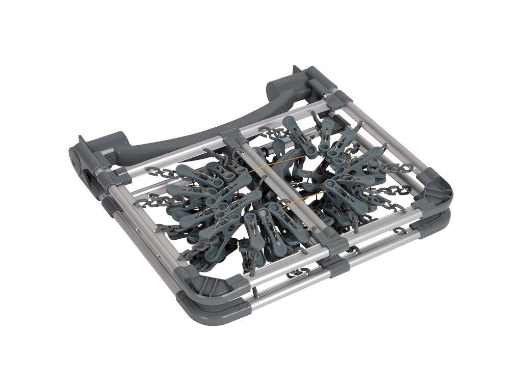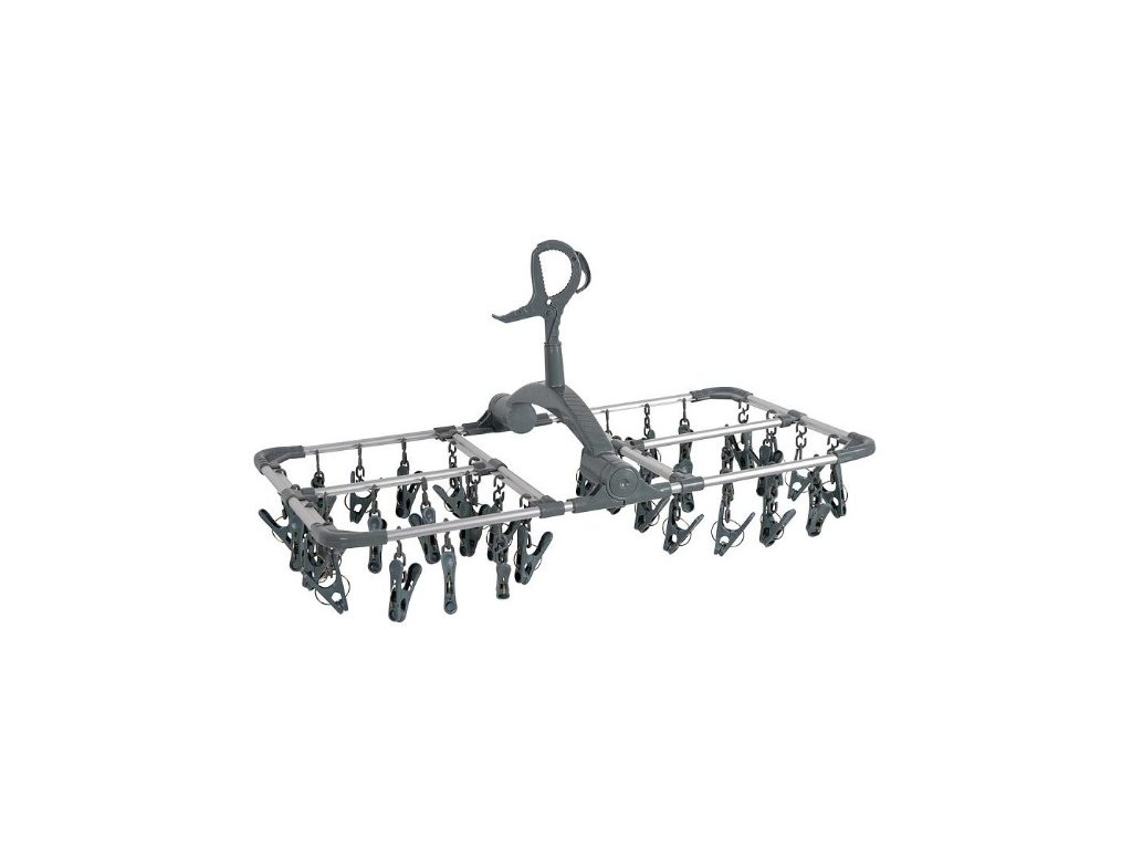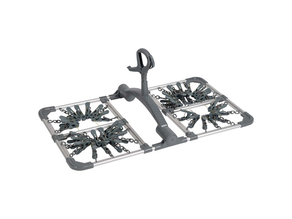 Tento šedý skládací sušicí kolotoč je nepostradatelným doplňkem pro každou domácnost, kempingové vybavení nebo karavan. Užijte si rychlé a efektivní sušení s tímto odolným a praktickým pomocníkem!