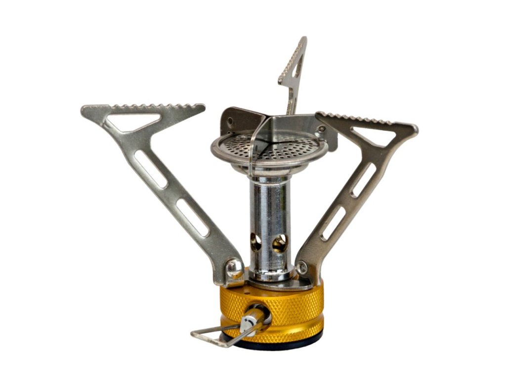 Compact Stove je lehce ovladatelný, lehký plynový vařič se sklopnými podpěrami hrnce pro snadné sbalení do úhledné krabičky.